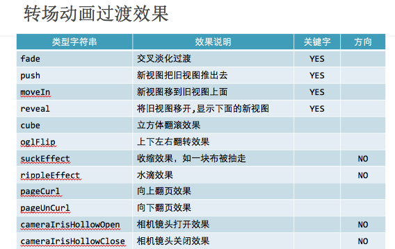 UINavigationController就是通过CATransition实现了将控制器的视图推入屏幕的动画效果